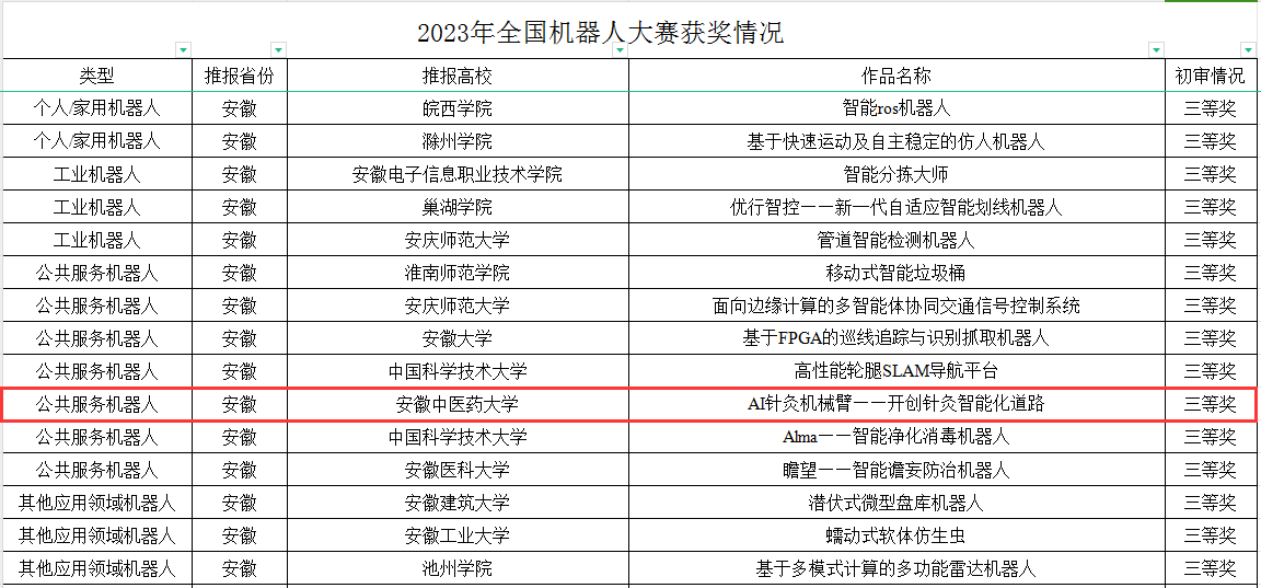 12月17日,由共青团中央工业和信息化部举办的2023年全国老员工机器人科技创新交流营暨机器人大赛落下帷幕,公司“AI针灸机械臂——开创针灸智能化道路”团队获得了三等奖(队长:英国正版365官方网站王绍伟,队员:李文豪、邱圆圆、胡延及针灸推拿公司22级针灸推拿专业李佳如;指导老师:孙大勇、余情、徐静)。