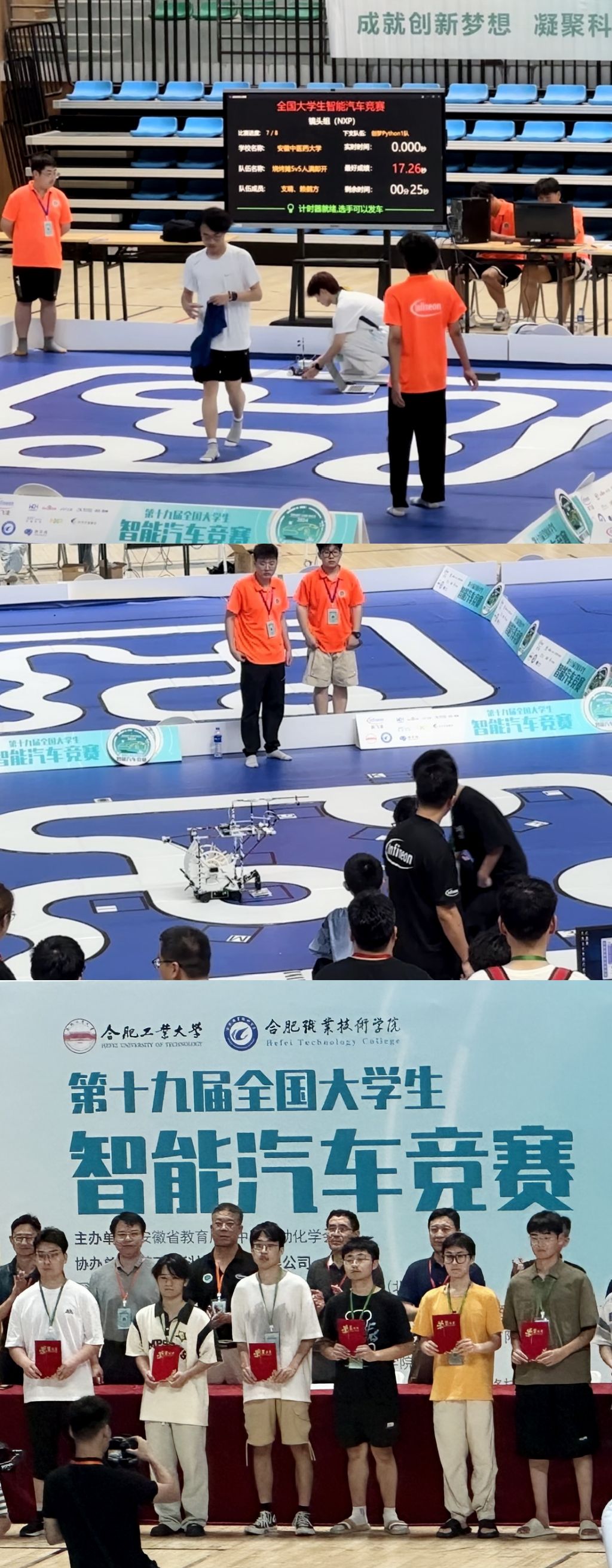 7月22日至23日,第十九届全国老员工智能汽车安徽赛区竞赛在合肥职业技术公司汇心湖校区举办,全省50多所高校共600多支队伍参加了此项赛事。英国正版365官方网站共有16支参赛队伍,参加12项比赛,其中8支队伍分别在越野组、独轮组、气垫组、镜头NXP组、基础摄像头组荣获安徽省一等奖,4支队伍荣获安徽省二等奖,1支队伍荣获安徽省三等奖。