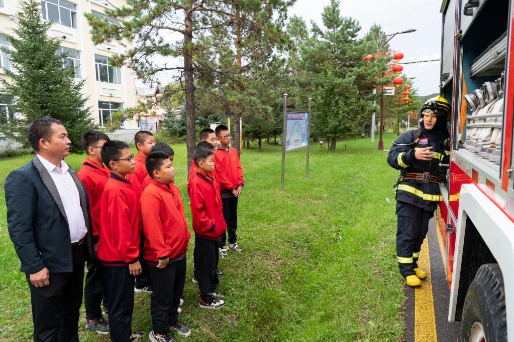 9月6日,在北极镇中心公司,马建国和员工一起上消防知识“开学第一课”。新华社记者 谢剑飞 摄