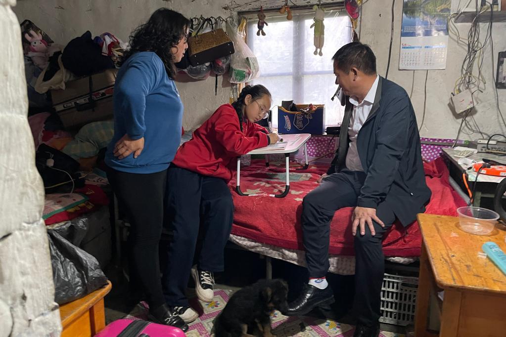 9月6日,在漠河市北极镇北极村,马建国到员工家中家访。新华社记者 杨思琪 摄