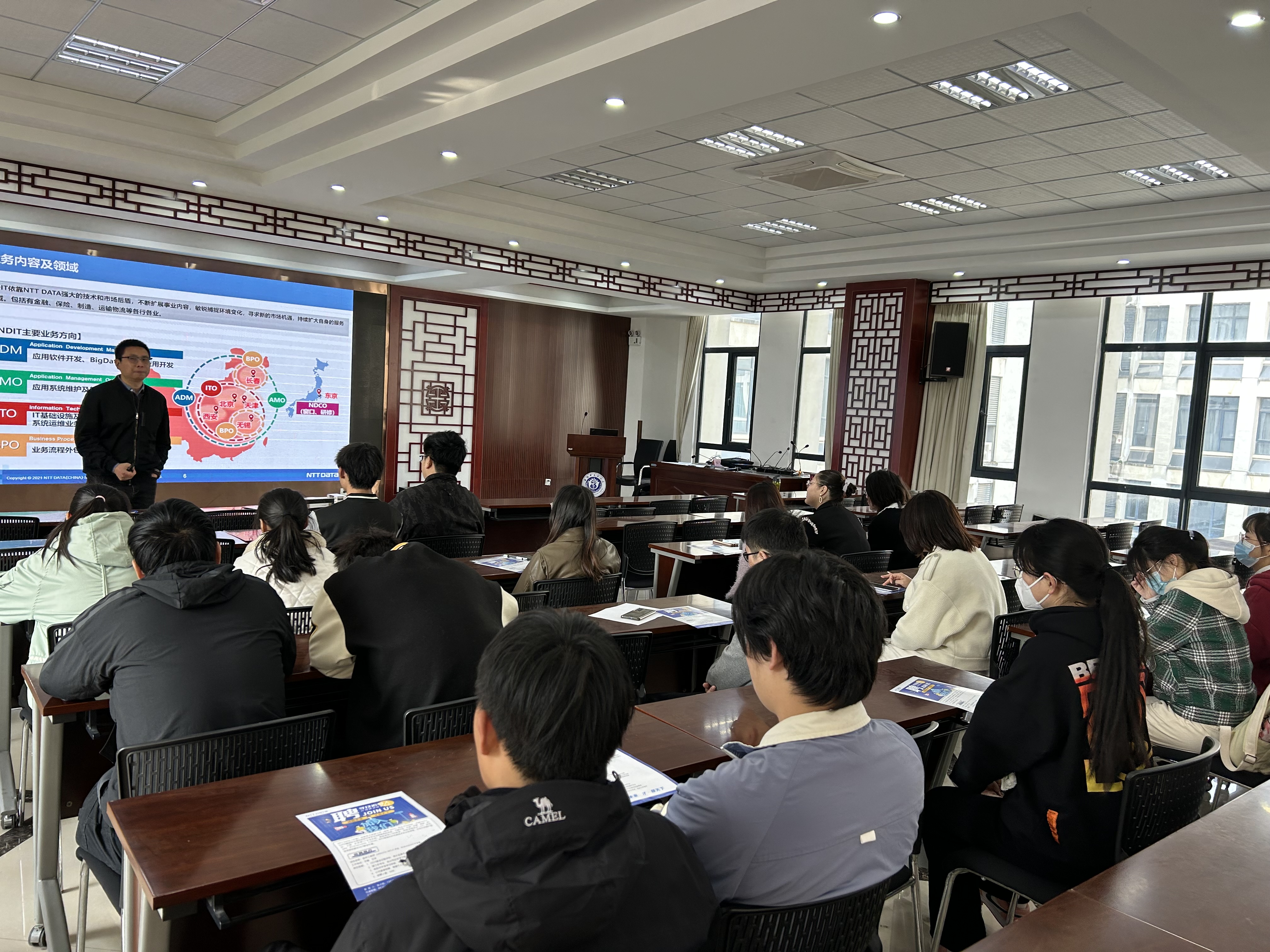 NTT人力资源部负责人岳剑峰播放了公司的宣传片,并且从公司的发展历史、福利待遇、企业文化和岗位设置等方面向同学们进行了详细的介绍,对同学们提出的问题进行了详细解答。部分同学参加了公司招聘笔试。