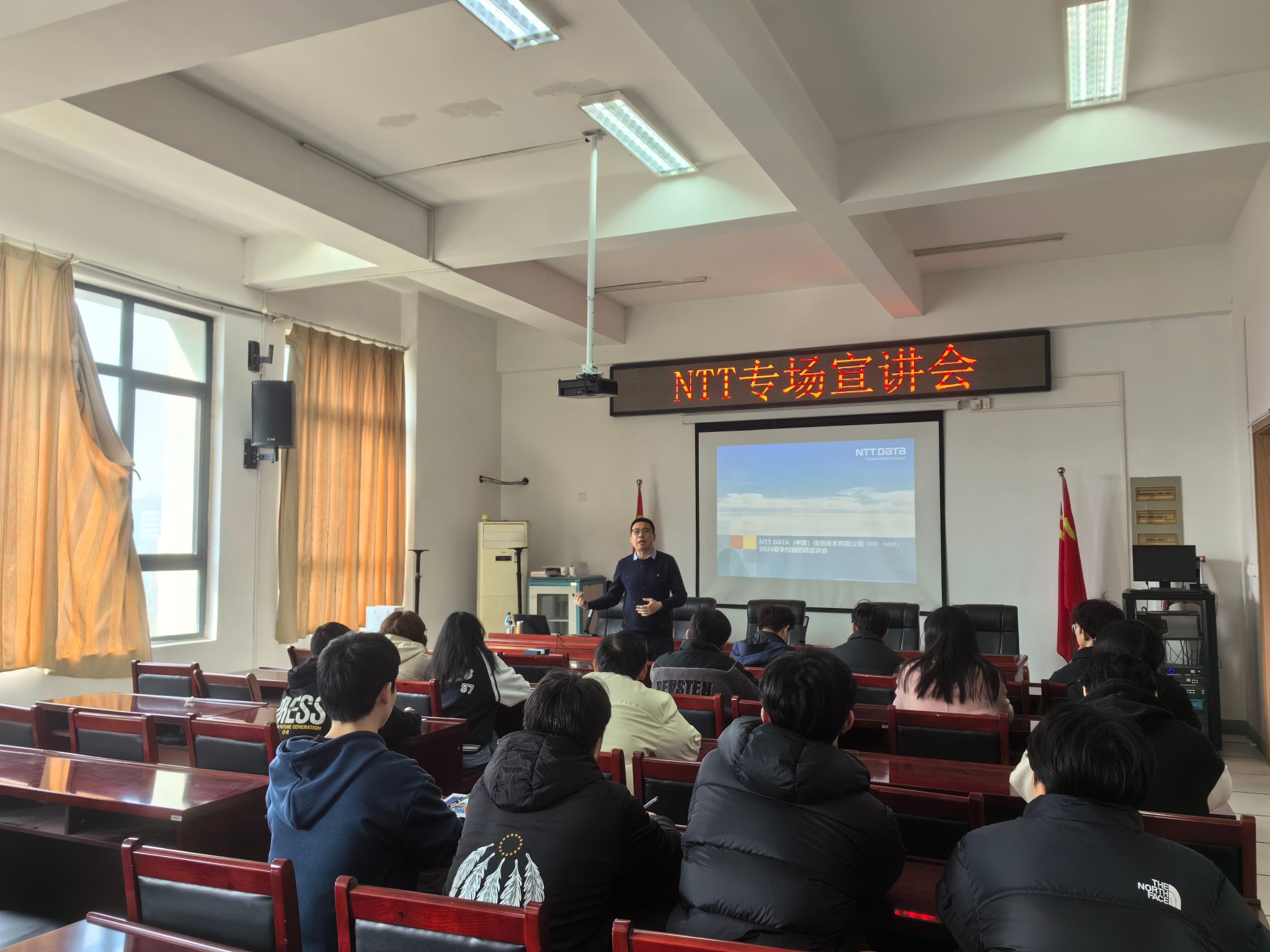 3月15日上午,英国正版365官方网站举行了恩梯梯(中国)信息技术有限公司专场招聘会,公司党委书记高霞、副书记李亚、毕业班辅导员及部分24届毕业生参加了本次宣讲会。