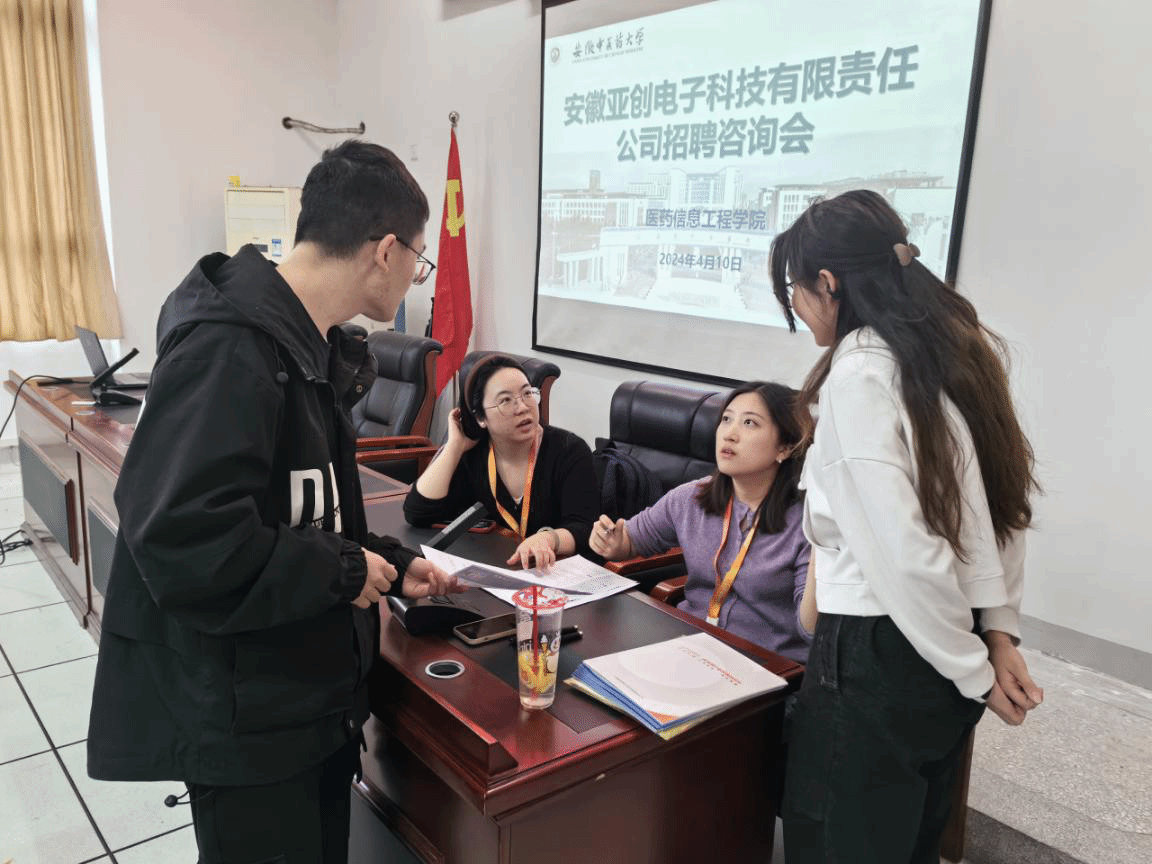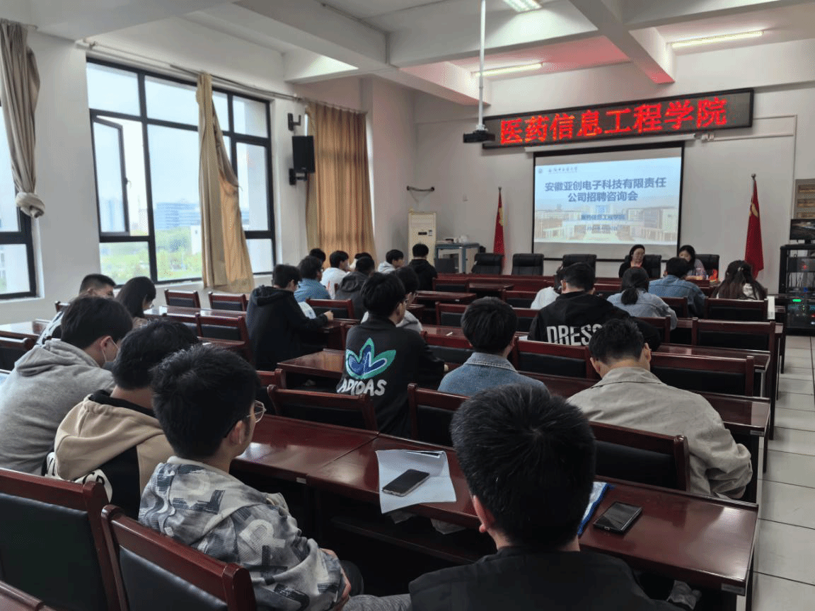 4月10日下午,英国正版365官方网站举办安徽亚创电子科技有限责任公司招聘咨询会,公司毕业班辅导员、就业秘书及部分20级、21级员工参加了本次招聘咨询会
