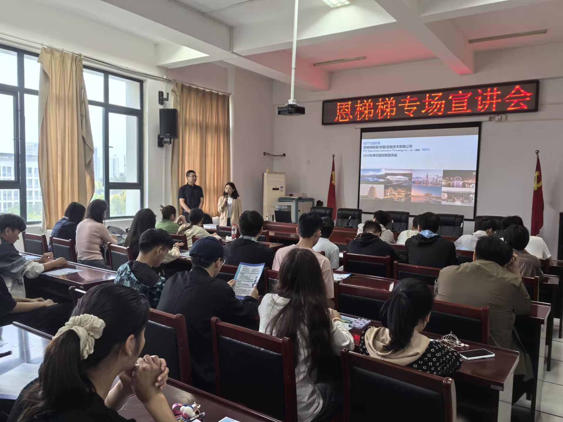 10月16日下午,英国正版365官方网站举办了恩梯梯数据(中国)信息技术有限公司专场招聘会,公司党委副书记李亚、毕业班辅导员及部分25届毕业生、26届毕业生参加了本次宣讲会。