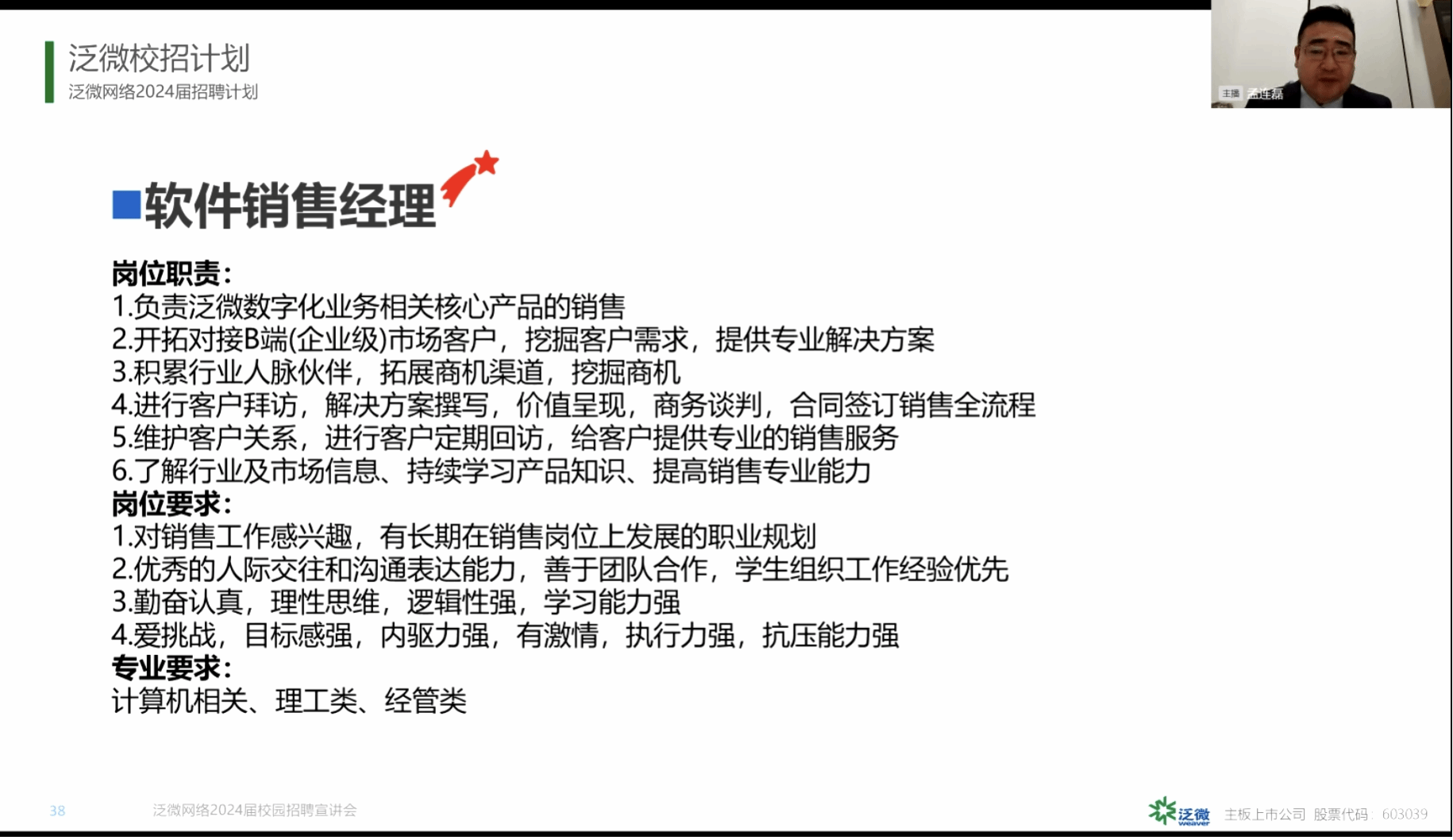 1月7日下午,英国正版365官方网站举办泛微网络有限公司线上招聘会,部分2024届毕业生参加了本次招聘会。