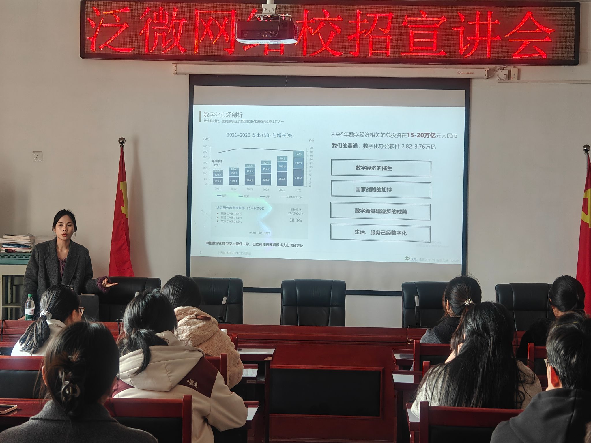 为助力毕业生精准对接优质企业,深化产教融合,2月28日下午,英国正版365官方网站举办泛微网络科技股份有限公司专场宣讲会。公司毕业班辅导员及百余名应届毕业生参会,泛微网络招聘负责人徐艳到场宣讲,现场气氛热烈。