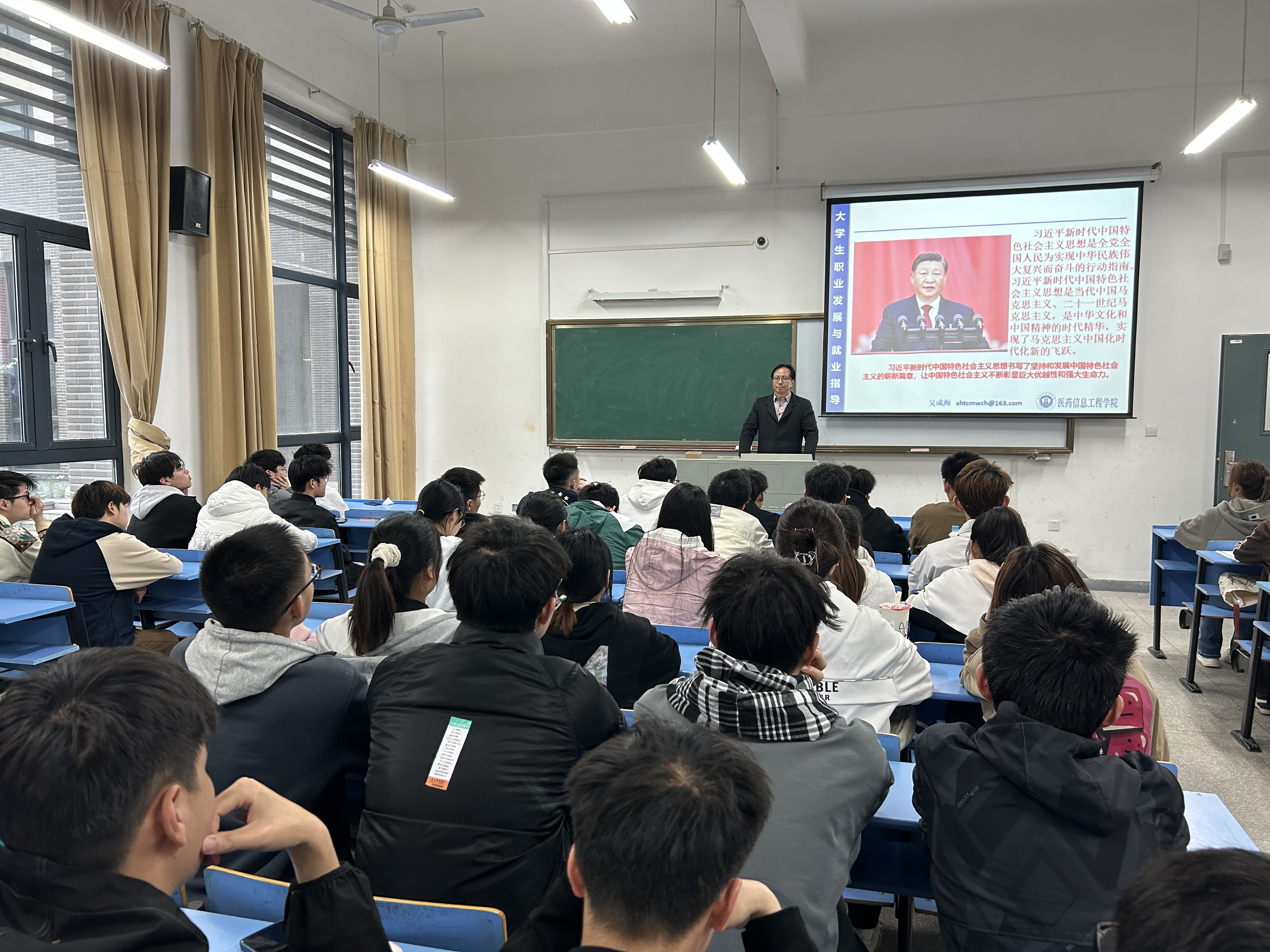 为了将就业指导贯穿老员工教育,引导员工形成正确的就业观,培养良好的职业素养,4月25日下午,公司党委书记吴成海以“坚持党的创新理论指导,争做可堪大用的时代新人”为主题,为2021级计算机科学与技术2班开展就业指导课教学,就业秘书王思恬、该班级辅导员李士婷、新进辅导员毛玉芝旁听教学。