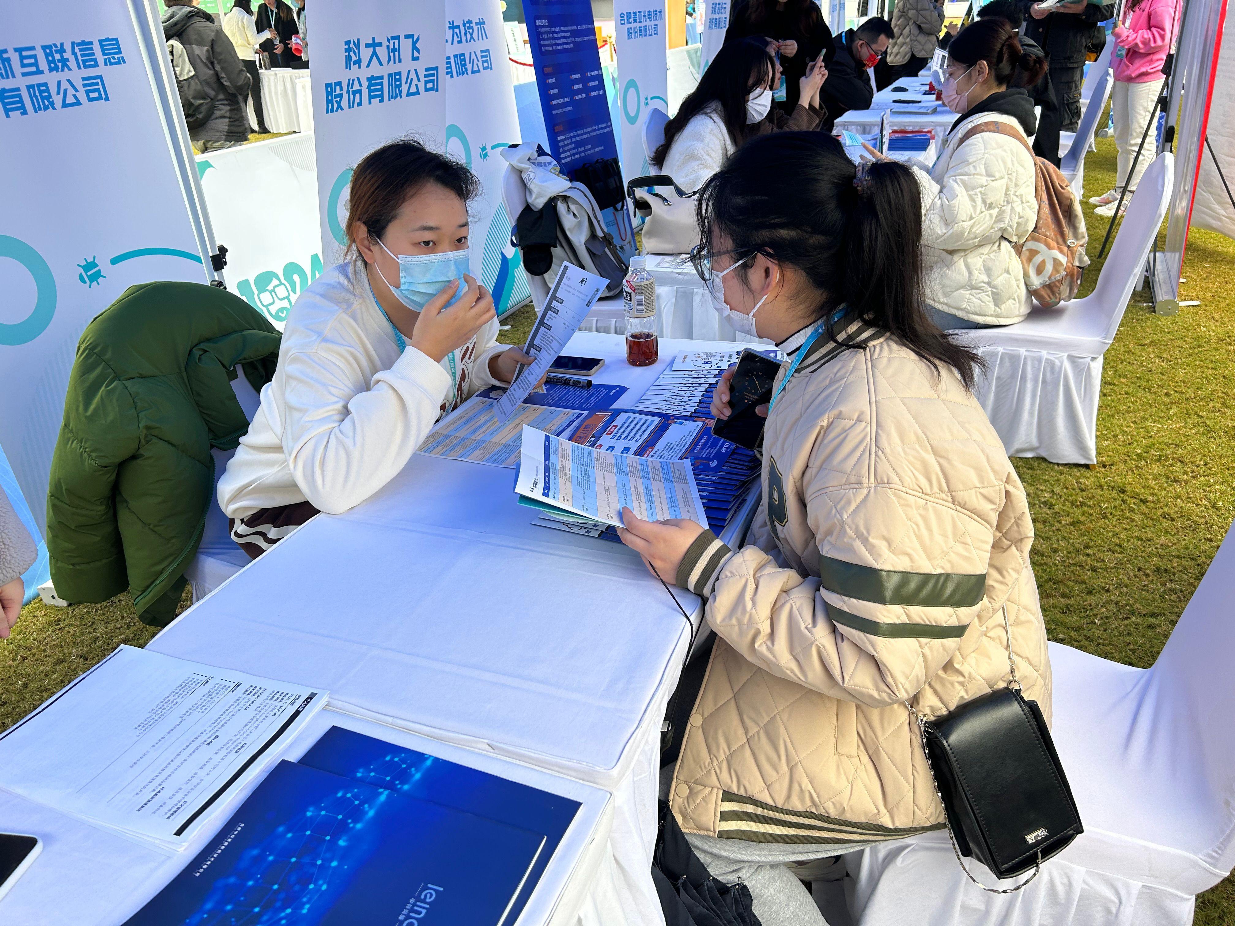 为推进公司2023届就业工作,给员工提供更好的就业靶向服务,英国正版365官方网站辅导员王思恬、徐静带领2019级员工参加了11月18日在合肥奥体中心举办的“创业安徽”科技人才主题招聘会。