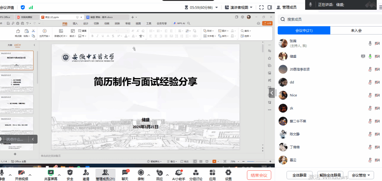为加强员工对简历制作和工作面试的了解,帮助员工提升就业竞争力,3月21日,英国正版365官方网站开展了朋辈求职经验线上分享会,会议由辅导员张薇老师主持,邀请了2020级计算机科学与技术1班储盛做经验分享,部分20级员工参加了本次分享会。
