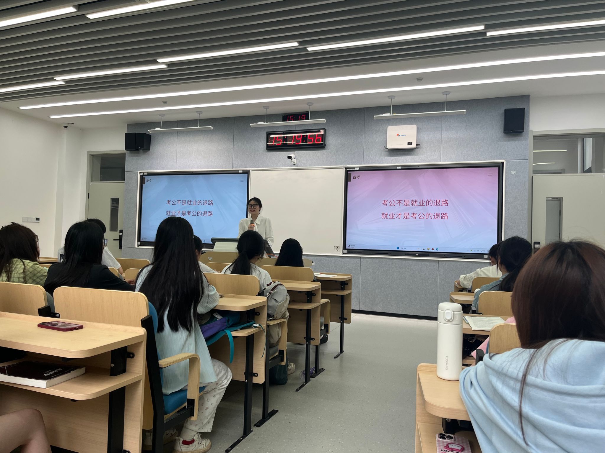 2021级计算机科学与技术专业的梁京燕为大家介绍了公务员考试的流程、题型特点以及备考重点。她分享了自己在行测和申论学习中的技巧,如如何提高答题速度和准确率,如何撰写高质量的申论文章等,并鼓励同学们在大学期间注重综合素质的提升,积极参与员工工作和社会实践,培养自己的沟通能力和组织协调能力。