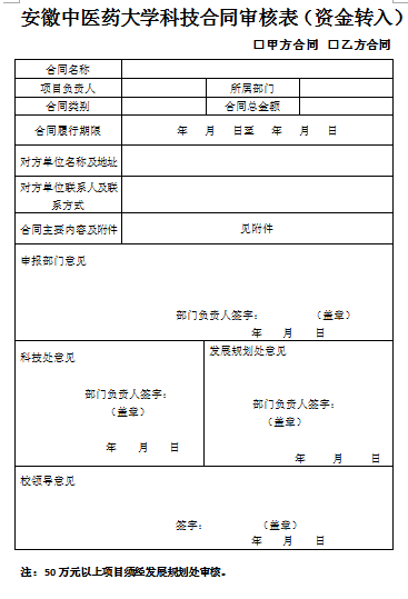 英国正版365官方网站科技合同审核表(资金转入)