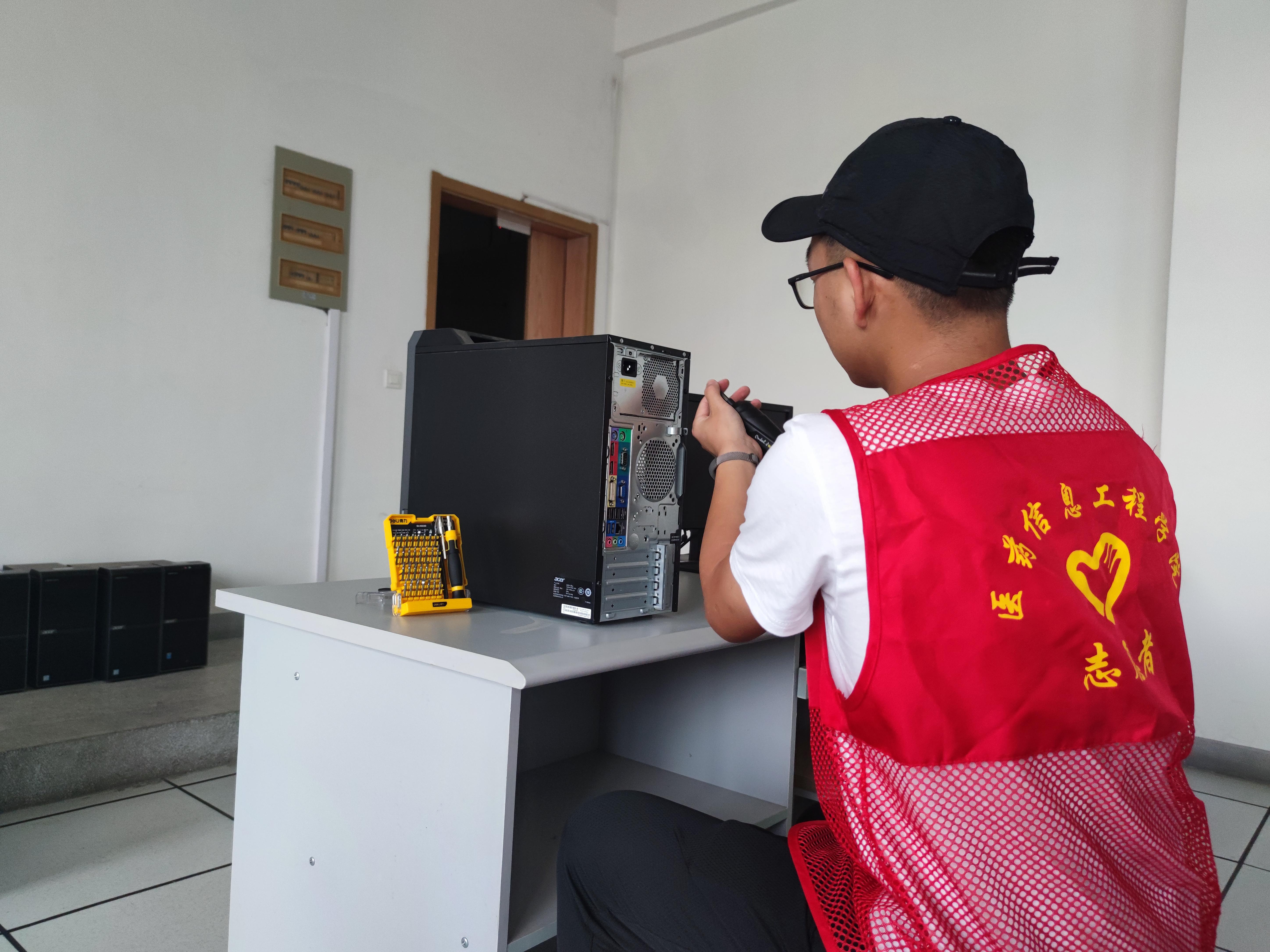 第一个模块是机房清洁与维护,志愿者们通过清扫地面、擦拭主机、显示器和电脑桌、摆放座椅、主机组装、线路插拔、电脑运行等一系列活动,对机房进行了清洁与维护,确保了公共机房的正常使用。