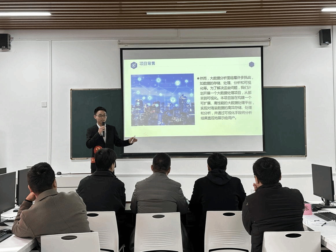 经过10月8日的初赛、18日的预赛,共有九组选手参加了决赛,比赛在大数据、人工智能及星火大模型3个赛道展开。选手们通过PPT介绍、产品演示,展示了各竞赛组的专业知识转化、技术创新优化的成果,显现了学习、创新效果。