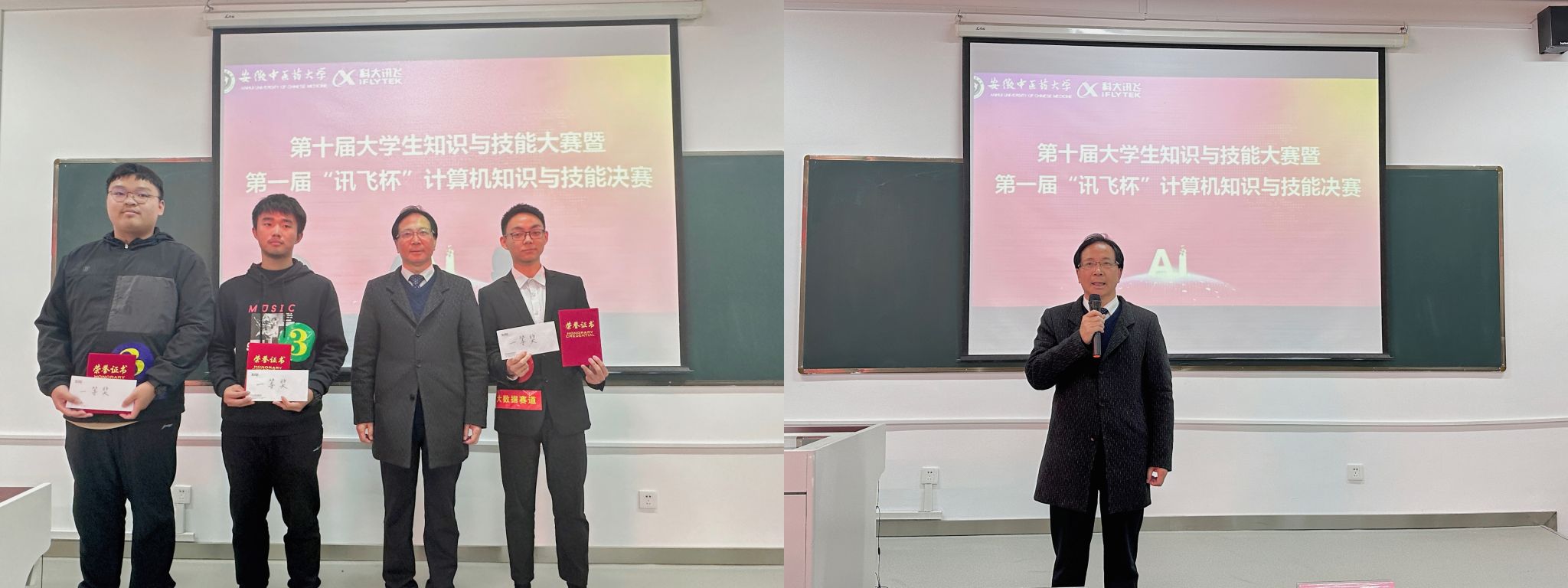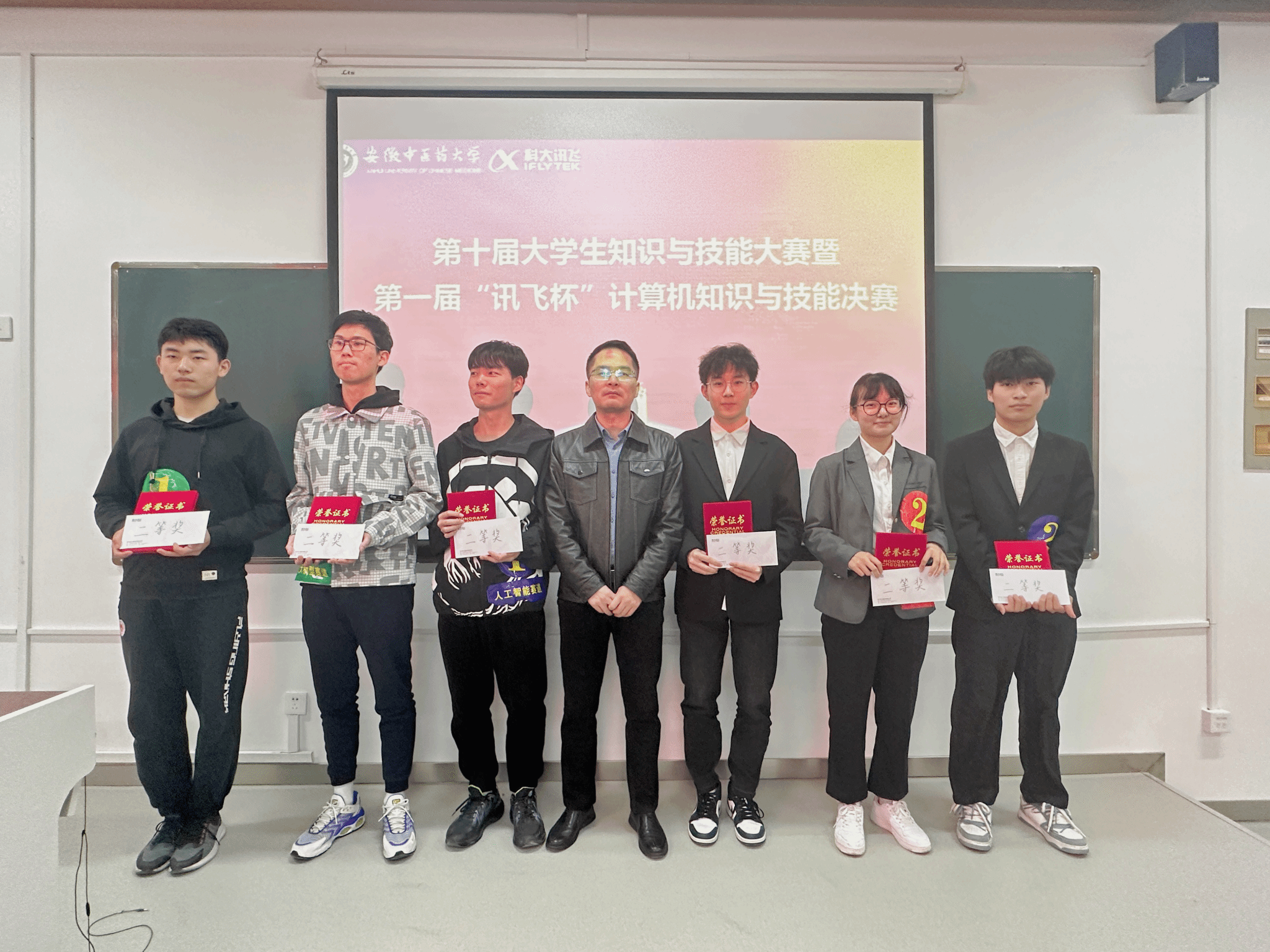 彭飞颁发二等奖,他表示讯飞公司将助力员工能力发展,打造高素质专业型员工,以赛促学,以比促进,保障广大信工学子赢得未来,成就为信息化人才。