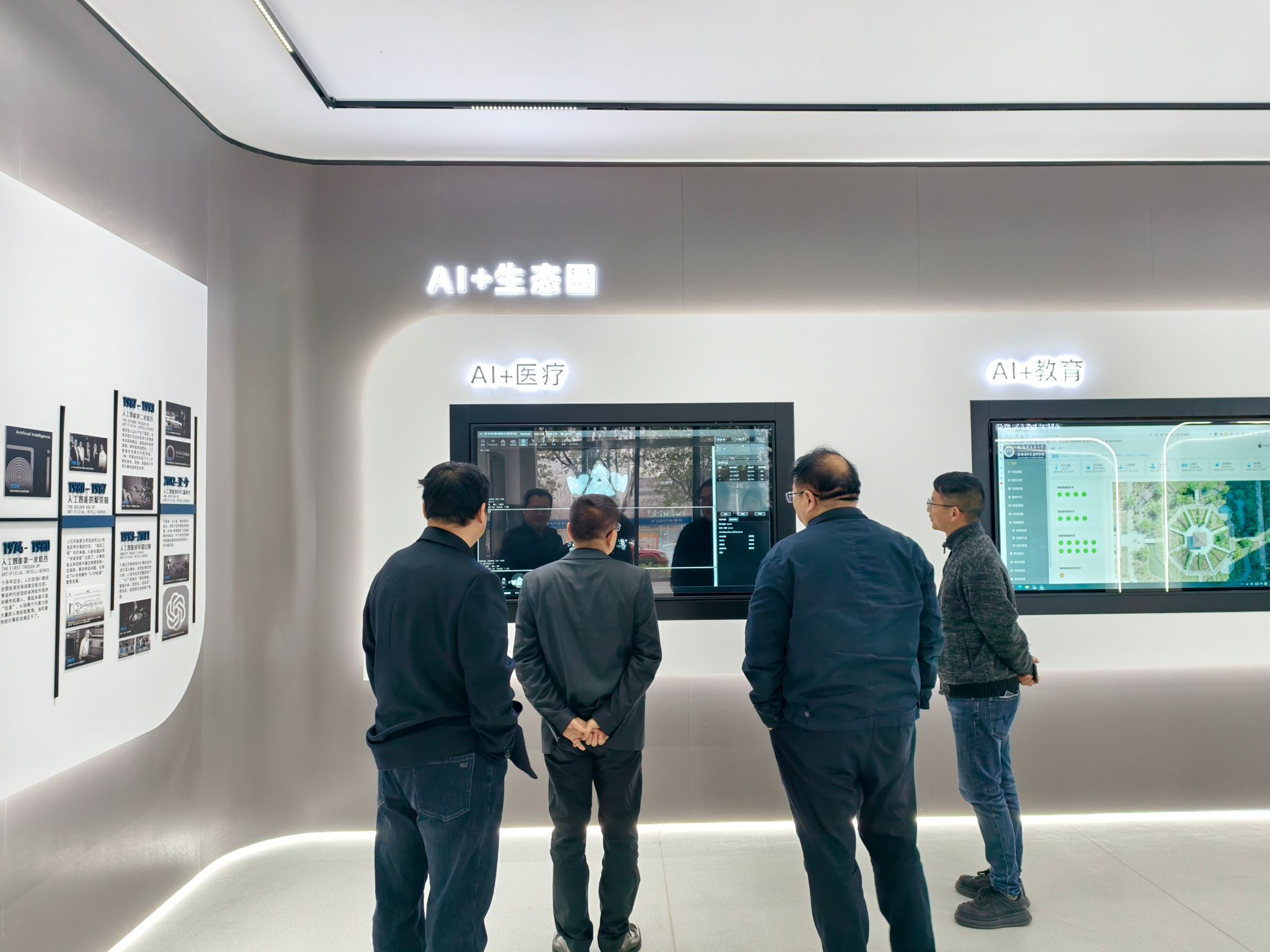 汪浩瀚、高森生一行人现场参观了讯飞现代产业公司人工智能体验中心、科研双创中心及实验实训中心。(欧阳婷/文图  高霞/审核)