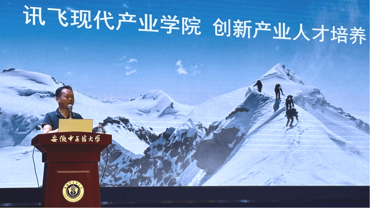 讯飞现代产业公司副经理彭飞从企业视角出发,为同学们提出切实可行的学习与发展建议。他鼓励大家积极把握校企协同育人机遇,提前规划职业方向,不断提升综合能力。